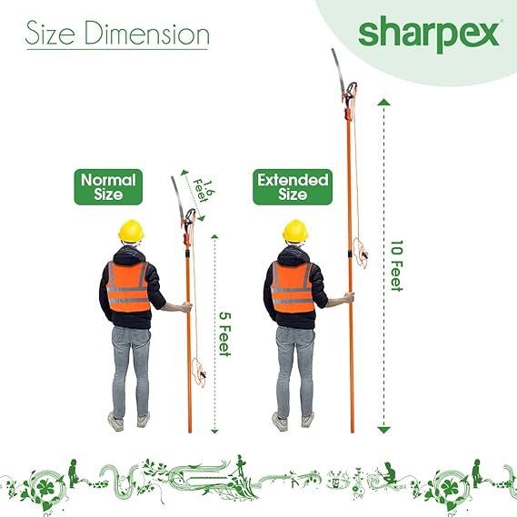Sharpex 2 Stage Telescopic Long Cutter for Tree | 10 Feet Tree Pole Pruner Long Handle Adjustable (5 feet To 10 feet) Pruning Saw for Branch Long Reach Tree Trimming, and Patio Trees Branches Cutting.
