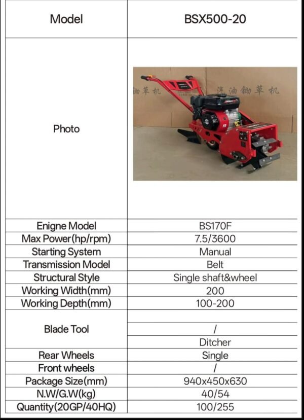 Mini Power Weeder & Ditcher Machine – BSX500-20 (7.5HP)